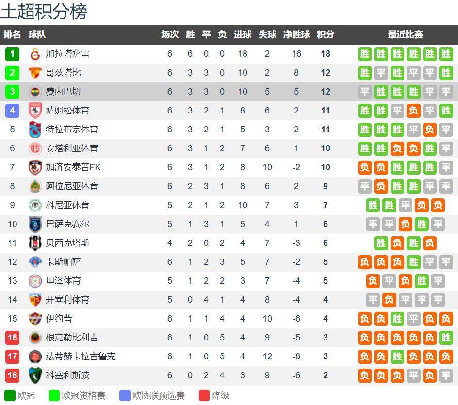 在土超第6轮的比赛中,费内巴切在长达半场时间里多打一人,但还在客场1-1战平卡斯帕撒,遭遇联赛再一次丢分的糟糕局面;而土超领头羊&卫冕冠军加拉塔萨雷主场3-1力克科尼亚体育,豪取土超六连胜开局并领跑。