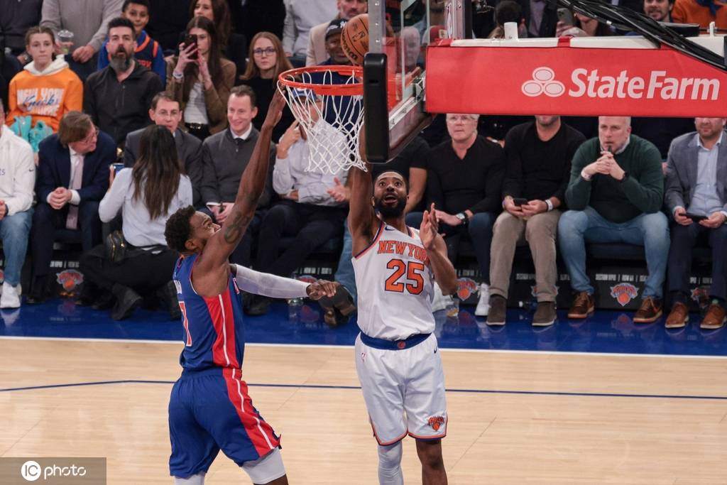 尼克斯队首发:杰伦-布伦森、卡尔-安东尼-唐斯、约什-哈特、米卡尔-布里奇斯、OG-阿奴诺比